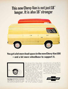 This is an original 1966 color print ad for the 1967 Chevy-Vans (90 and 108 models) from the Chevrolet Division of General Motors.
