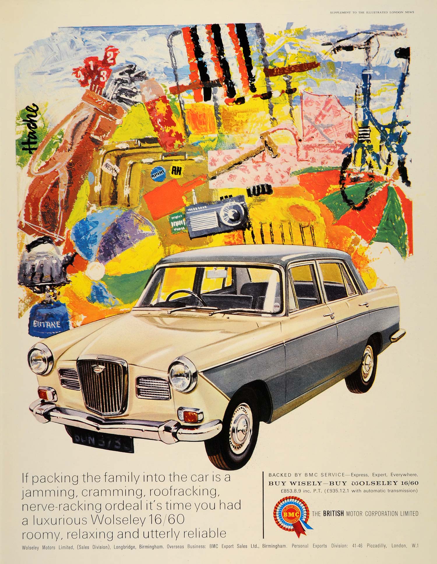 This is an original 1966 color print ad for the Wolseley 16/60 car from Wolseley Motors Limited, a part of the British Motor Corporation (BMC).