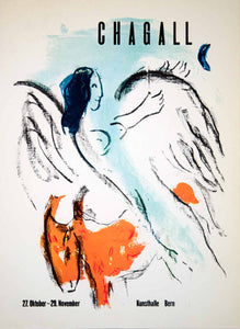 This is an original 1966 color offset lithograph of a poster created by Marc Chagall for an exhibition at the Kunsthalle, Bern, from 27 Oktober - 29 November, n.d.