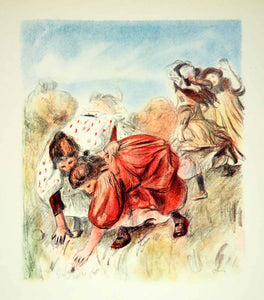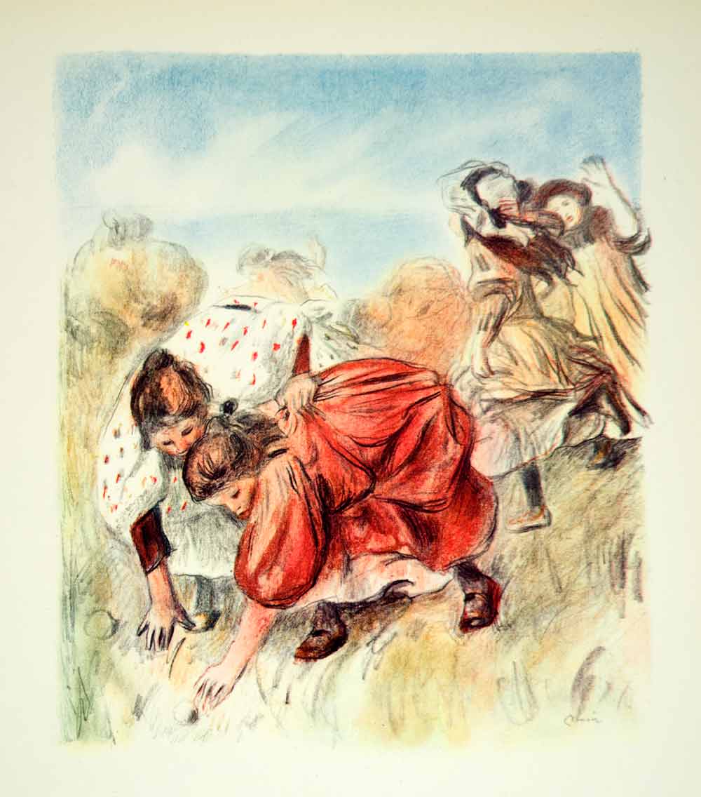 This is an original 1966 color photolithograph depicting children playing in a field by Auguste Renoir.