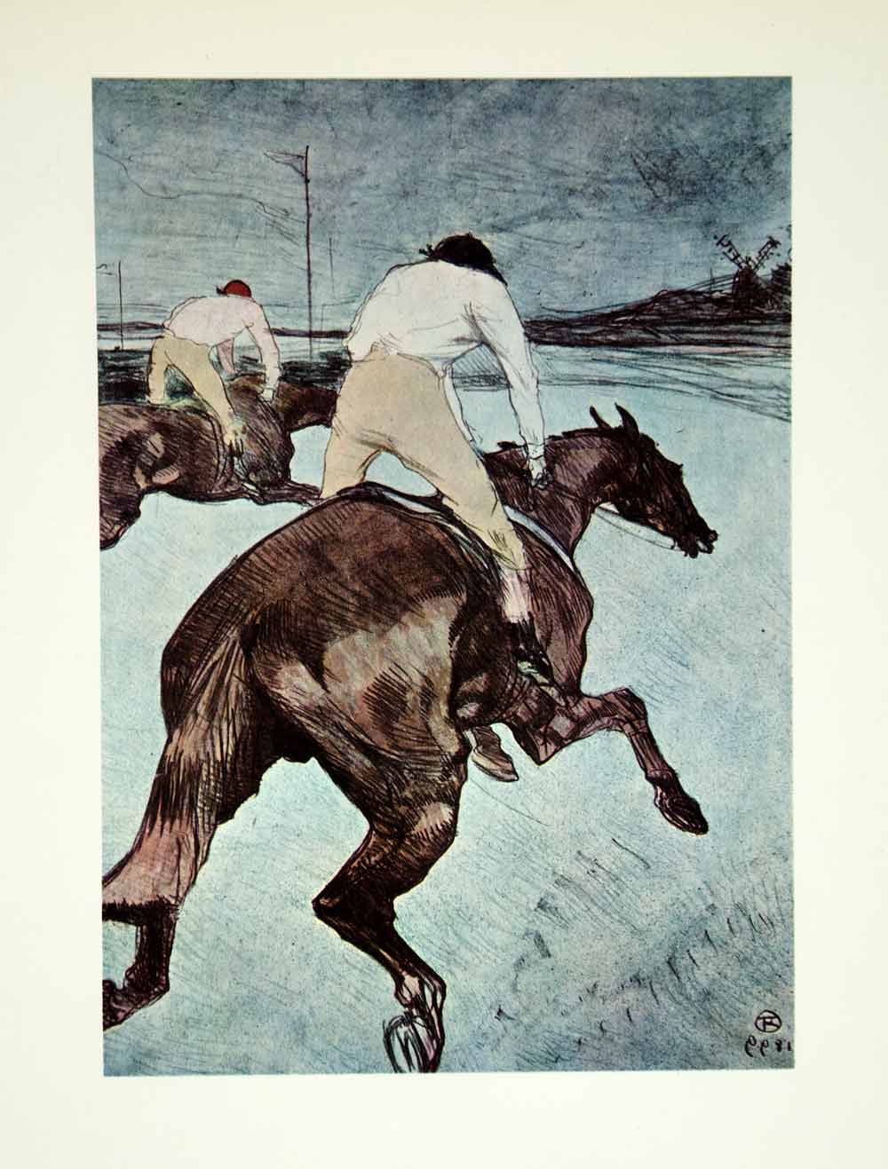 This is an original 1966 color photolithograph depicting two jockeys riding horses by Henri de Toulouse-Lautrec.