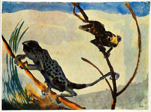 1966 Print Emil Nolde Chameleons Wildlife Watercolor Modern Reptile Lizard Art