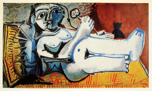 1966 Print Pablo Picasso Naked White Lady Gold Pillow - ORIGINAL