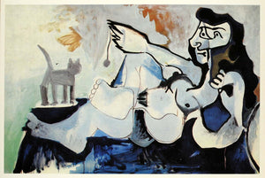 1966 Print Pablo Picasso Original Nude Lady Playful Cat - ORIGINAL