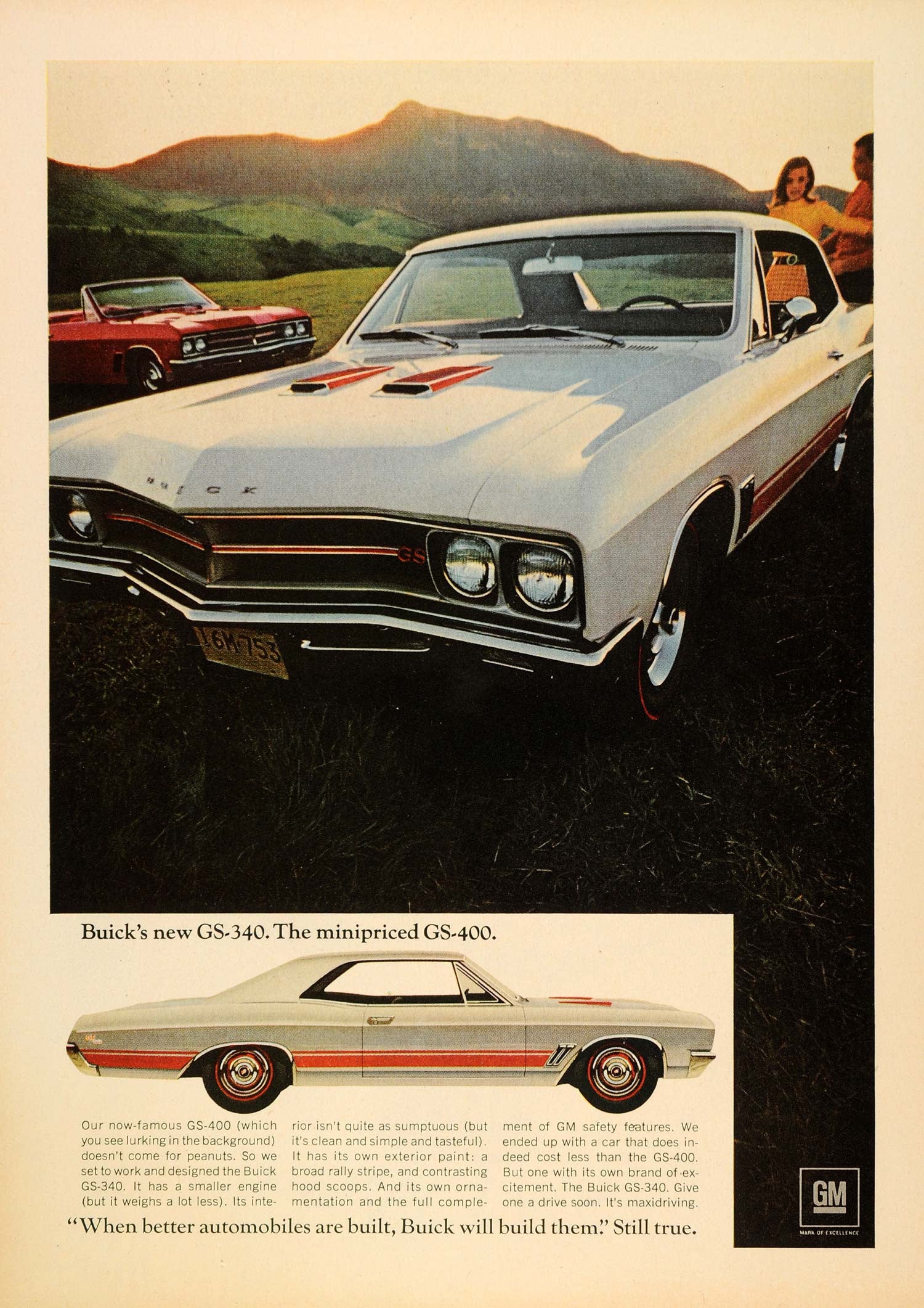 This is a stunning original 1967 color print ad for the Buick GS-340 and GS-400 automobile from Buick Motor Division, General Motor Corporation. This is an excellent original print item for the collector of this vintage car!