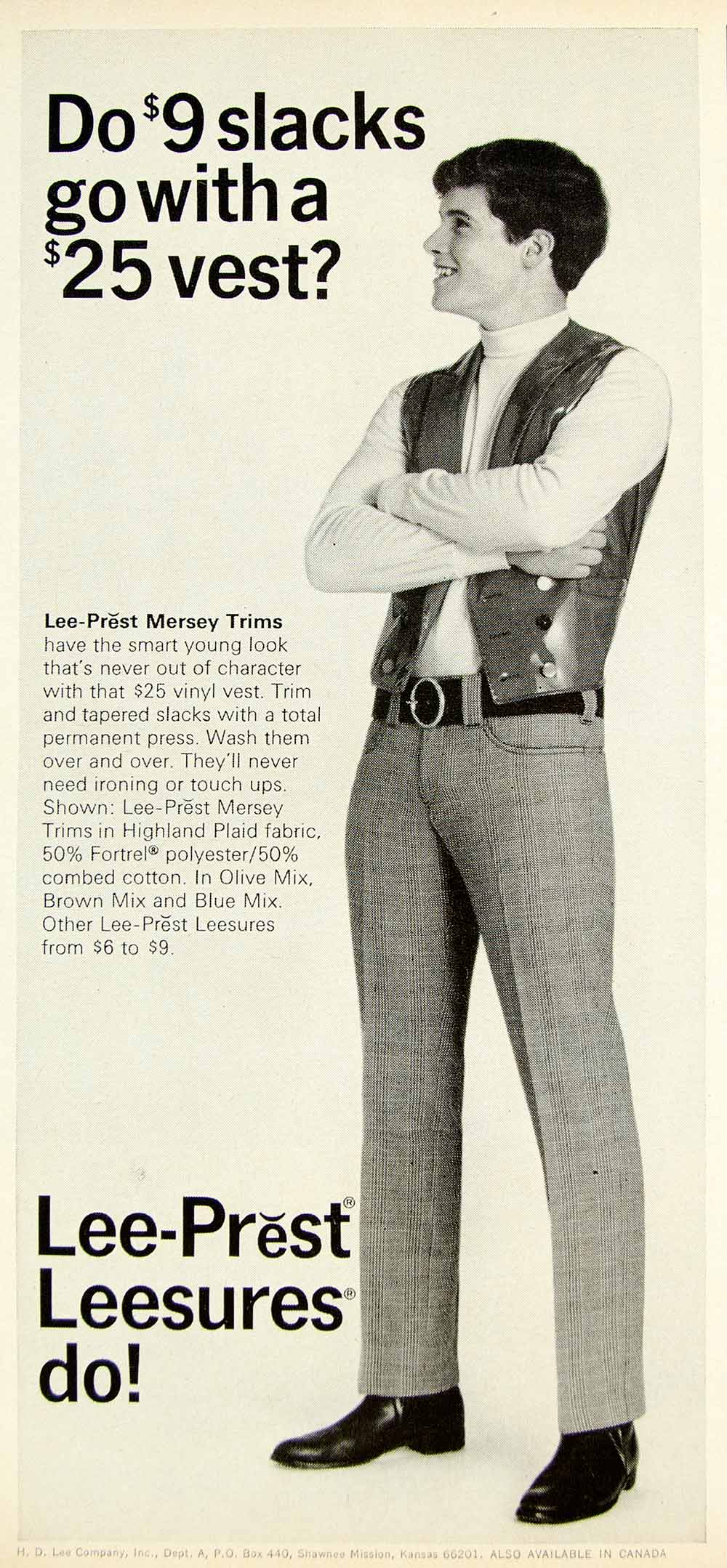 This is an original 1967 black and white print ad for Lee-Prest Mersey Trims Slacks for men.