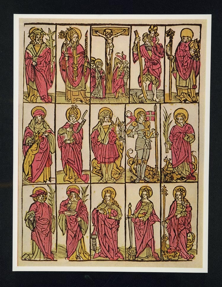 This is an original 1967 tipped-in print of a colored woodcut illustration.