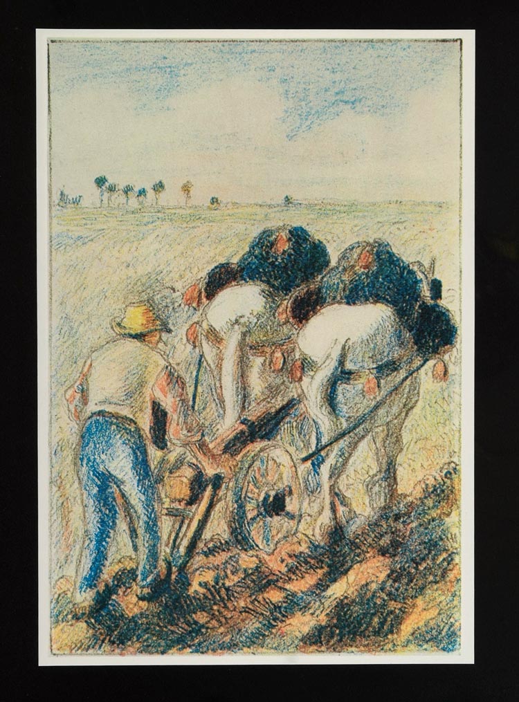 This is an original 1967 tipped-in print of a color lithograph by Camille Pissarro, (1830-1903).