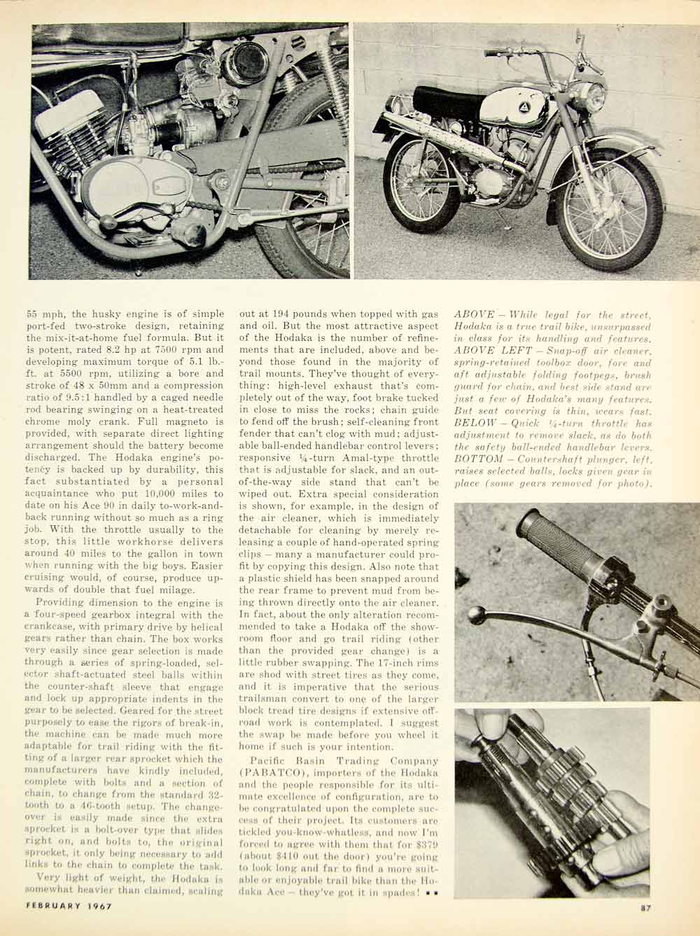 This is an original 1967 two-page print article, with halftone illustrations, by Bob Greene about the Hodaka, the 90cc Japanese trail bike built exclusively for the American market. Please see both images.