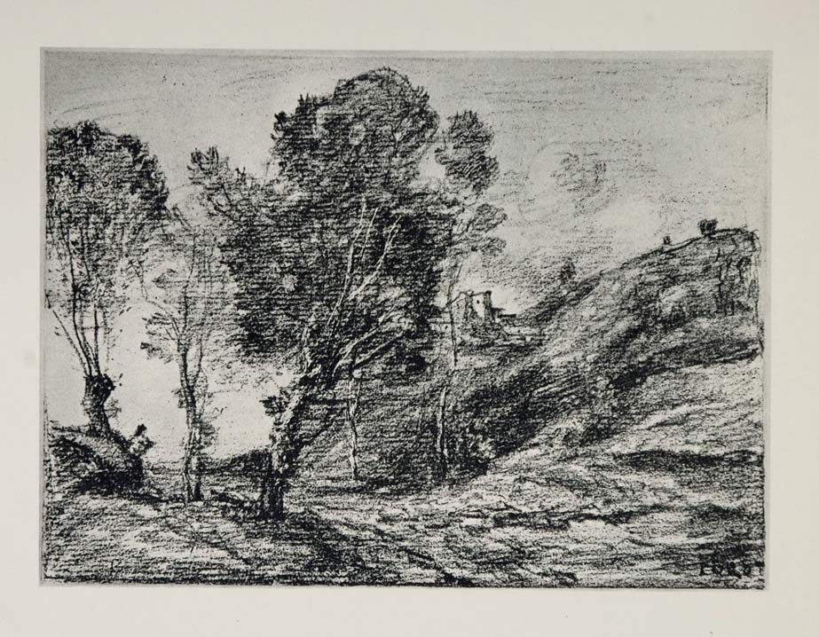 This is an original 1967 print of a lithograph by Jean-Baptiste-Camille Corot, (1796-1875).