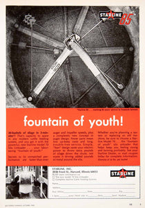This is an original 1968 two-color print ad for the silo unloader Model 70 from the Starline Incorporation of 20108 Front Street, in Harvard, Illinois.