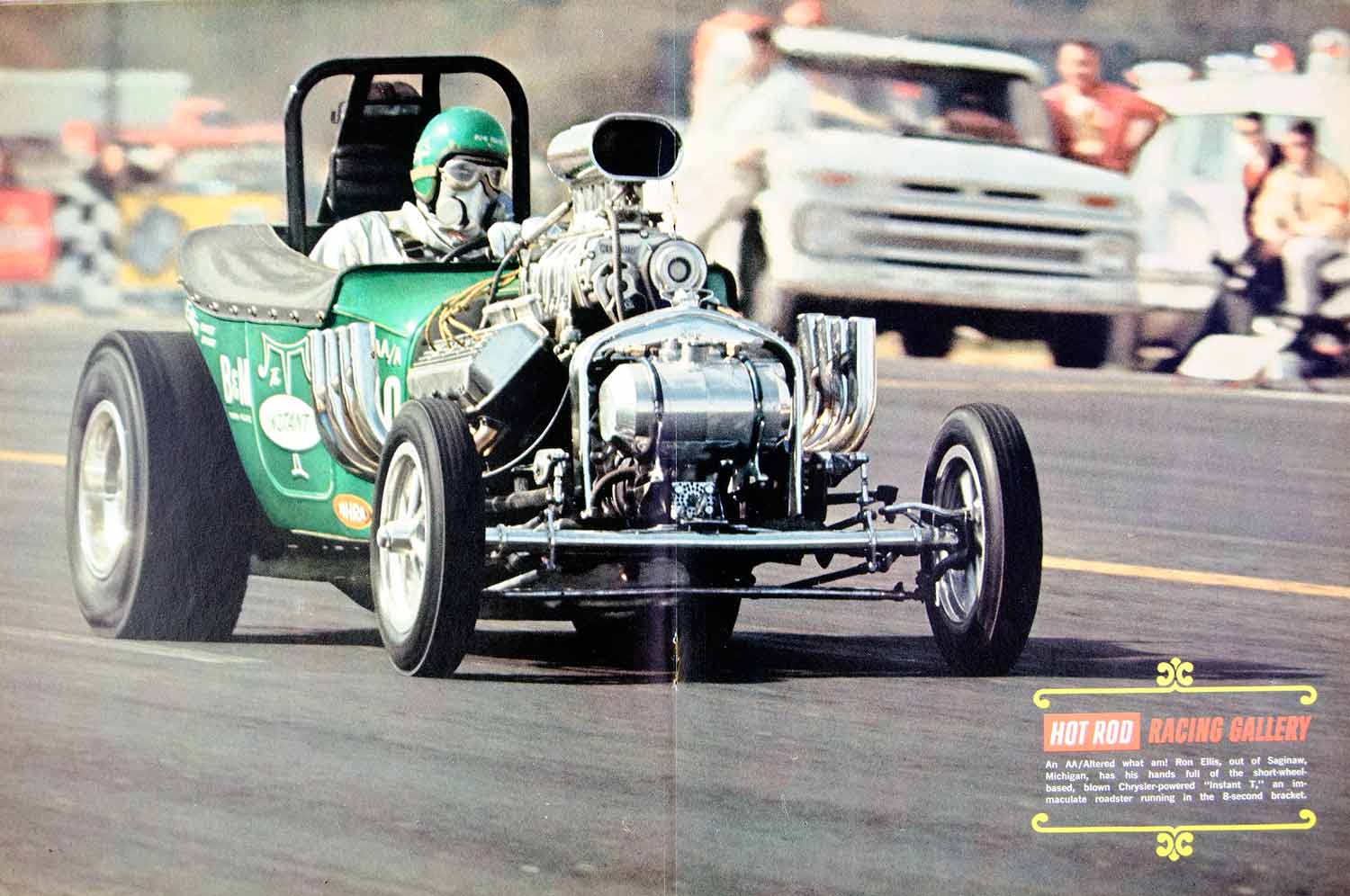 This is an original 1968 color print of "Instant T," a hot rod roadster owned by Ron Ellis of Saginaw, Michigan.