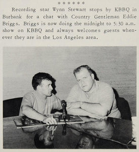 This is an original 1968 halftone print of country music recording star Wynn Stewart with Country Gentleman Eddie Briggs of KBBQ radio station in Burbank, CA.