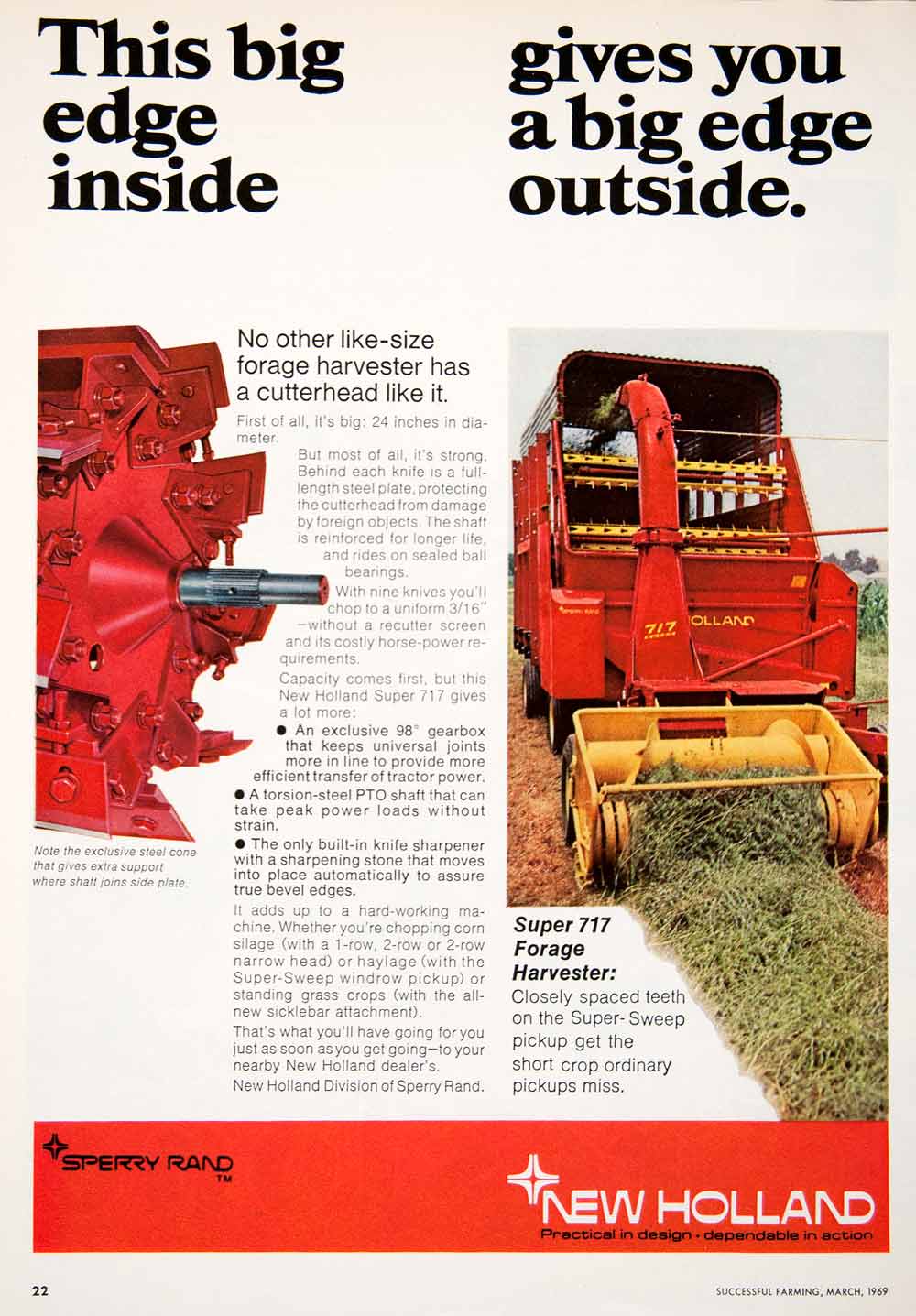 This is an original 1969 color print ad for the Super 717 Forage Harvester from the New Holland Division of Sperry Rand.