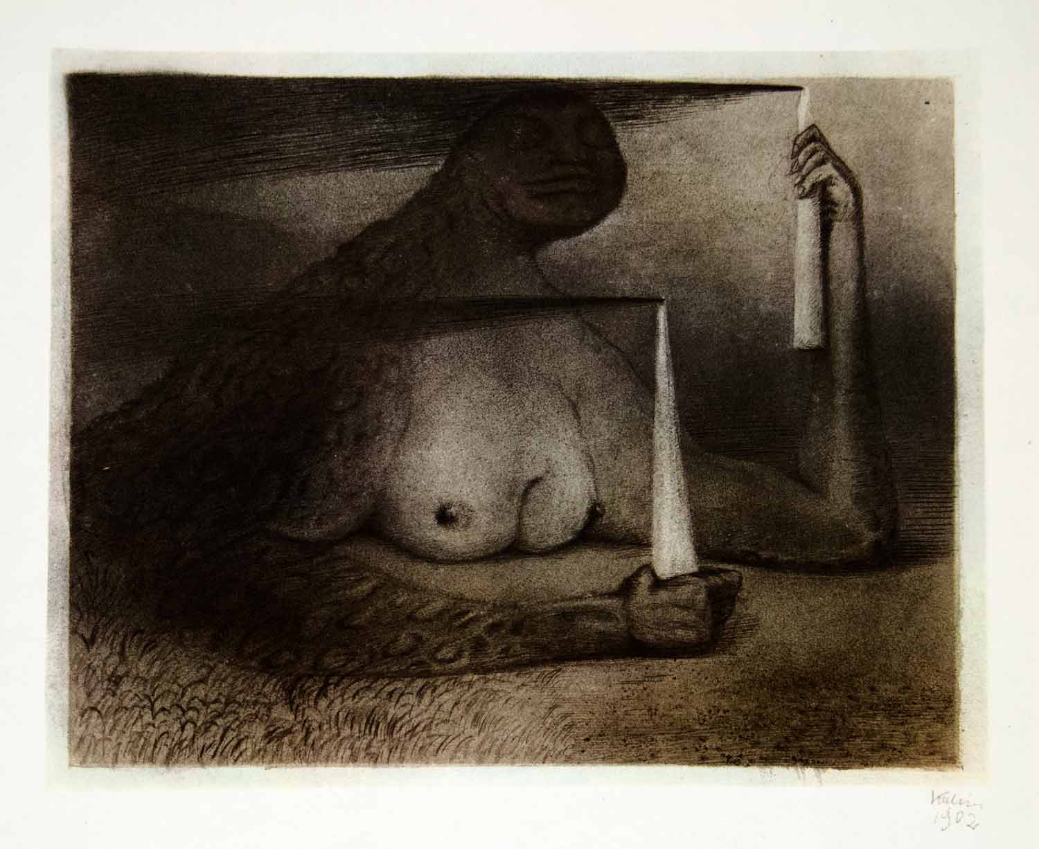 1969 Aquatone Print Alfred Kubin Art Mythical Beast Nude Naked Breasts XDG2