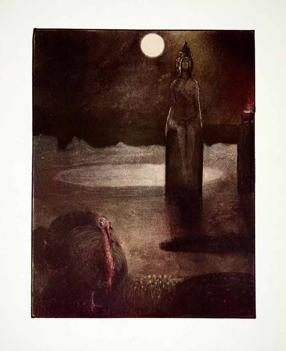 1969 Aquatone Print Alfred Kubin Art Turkey Nude Woman Mythical Wildlife XDG2