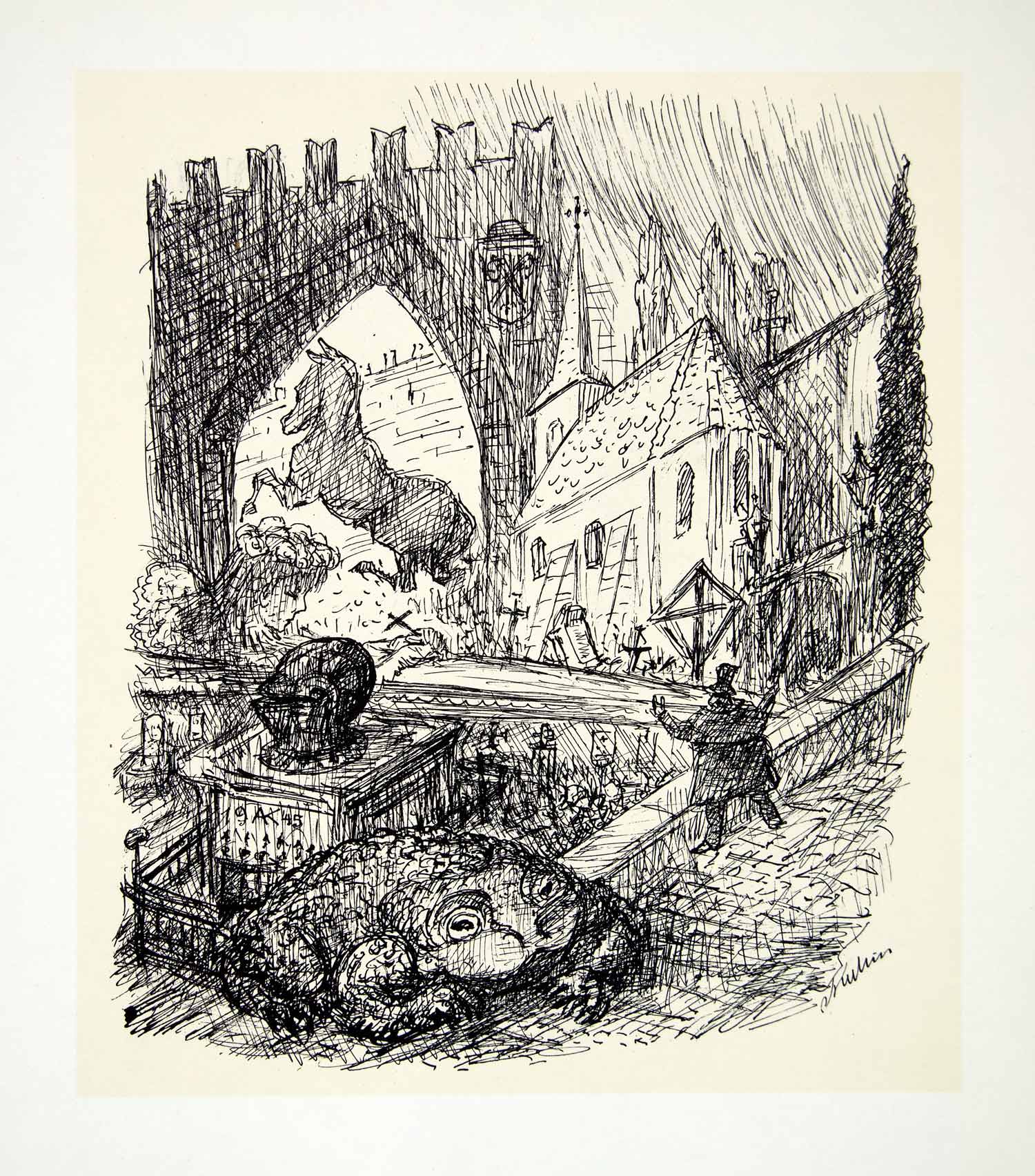 1969 Aquatone Print Alfred Kubin Surrealism Modern Art Graveyard Poetry XDG2