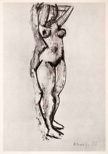 1969 Photolithograph Henri Matisse Art Standing Nude Woman Female Body Sketch