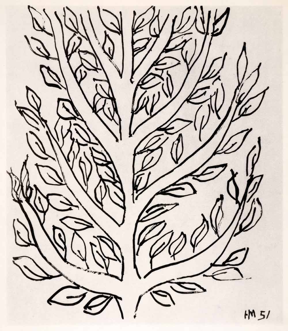 1969 Photolithograph Henri Matisse Bush Tree Chinese Ink Pen Sketch Abstract Art