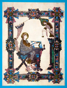 This is an original 1969 color with gold ink tipped-in print of "Gospels." This is a portrait of Saint Matthew originally painted directly onto the vellum.