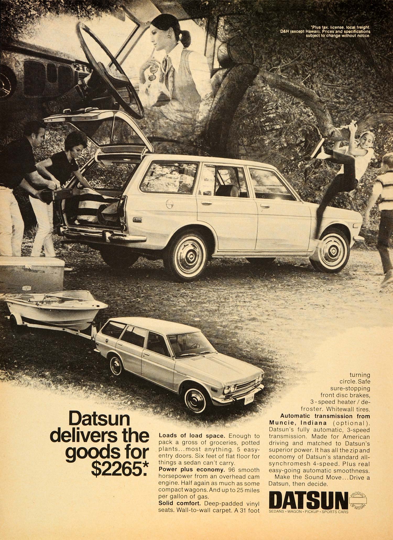 This is an original 1970 black and white print ad promoting the Datsun automobile. Datsun was made by DAT Motorcar Company and was founded in 1931. This is an excellent original print item for the collector of this vintage car!