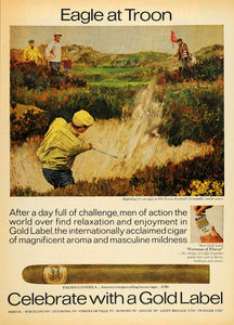 This is a rare original 1970 color print ad promoting the Palma Candela Cigars and featuring the golf course at the Royal Troon Golf Club.