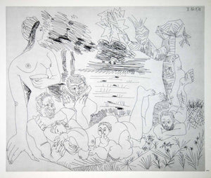 1970 Heliogravure Pablo Picasso Nude Figures Male Female Abstract Art P347B