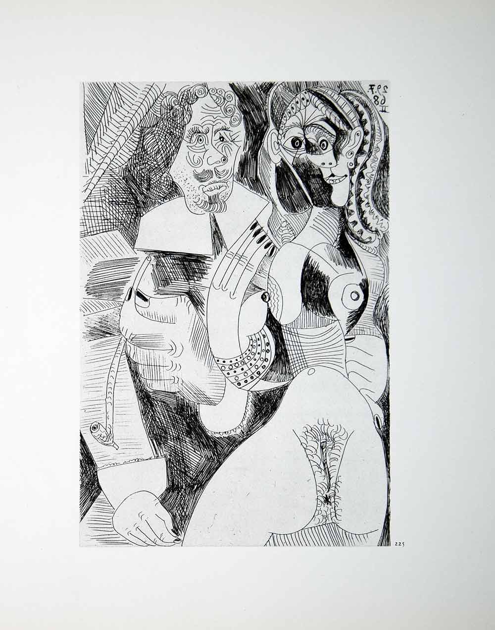 1970 Heliogravure Picasso Abstract Nude Female Erotic Art Musketeer Pipe P347B