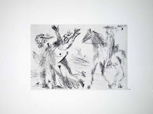 1970 Heliogravure Picasso Art Nude Female Figure Musketeer Horse Dry Point P347B