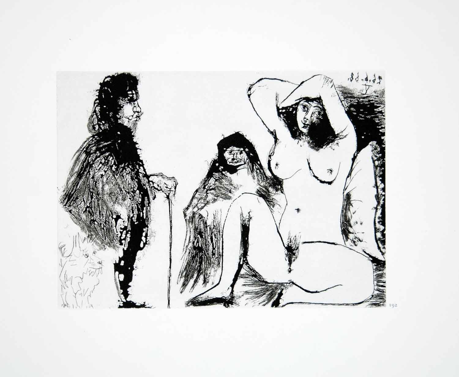 1970 Heliogravure Picasso Nude Female Figure Seated Male Dog Erotic Art P347B