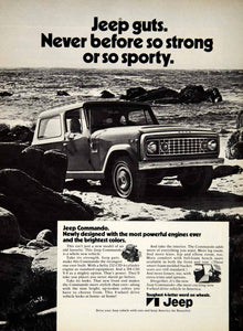 This is an original 1971 black and white print ad for the 1972 Jeep Commando 2-door sport utility vehicle (SUV) that was made and sold by the Jeep Motor Company.