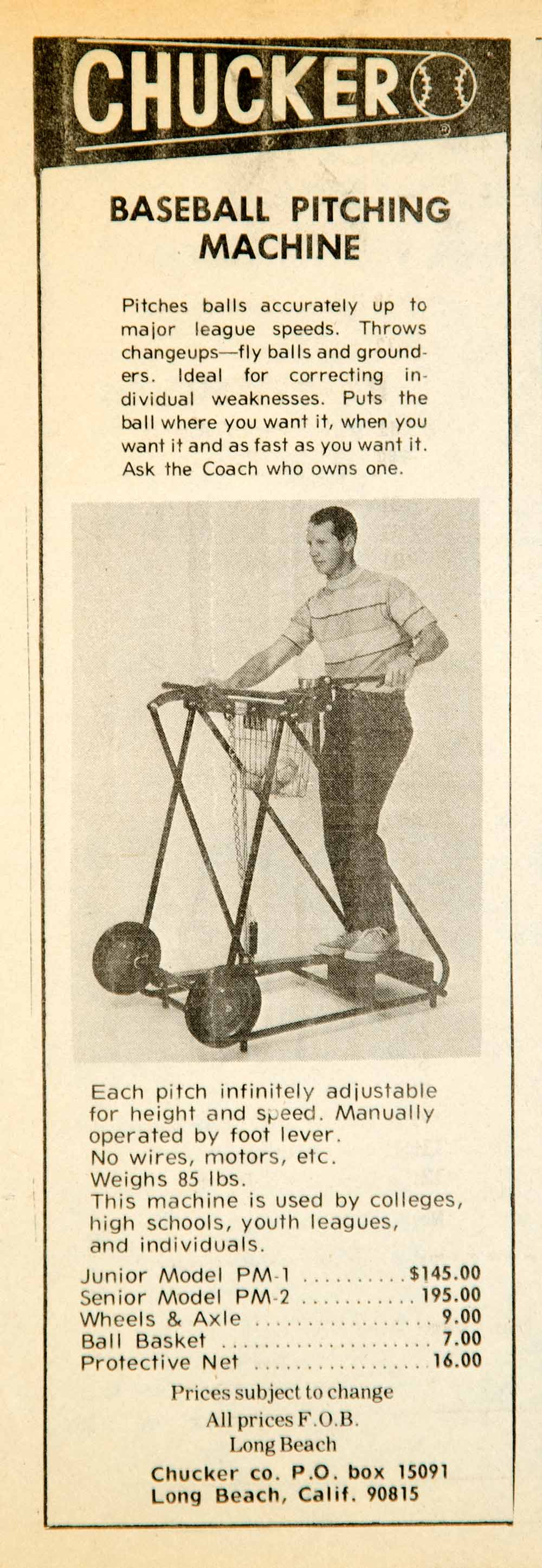 1972 Ad Chucker Baseball Pitching Machine Long Beach CA Sporting Goods YBD1