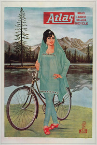 This is a 1973 color reproduction of a poster that was created in 1971 by artist Shree Des Raj to advertise Atlas Bicycles, India's largest selling bicycle.