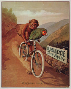 1973 Print Poster Ad Vintage Pope Columbia Bicycle Monkey Parrot C. M. Coolidge