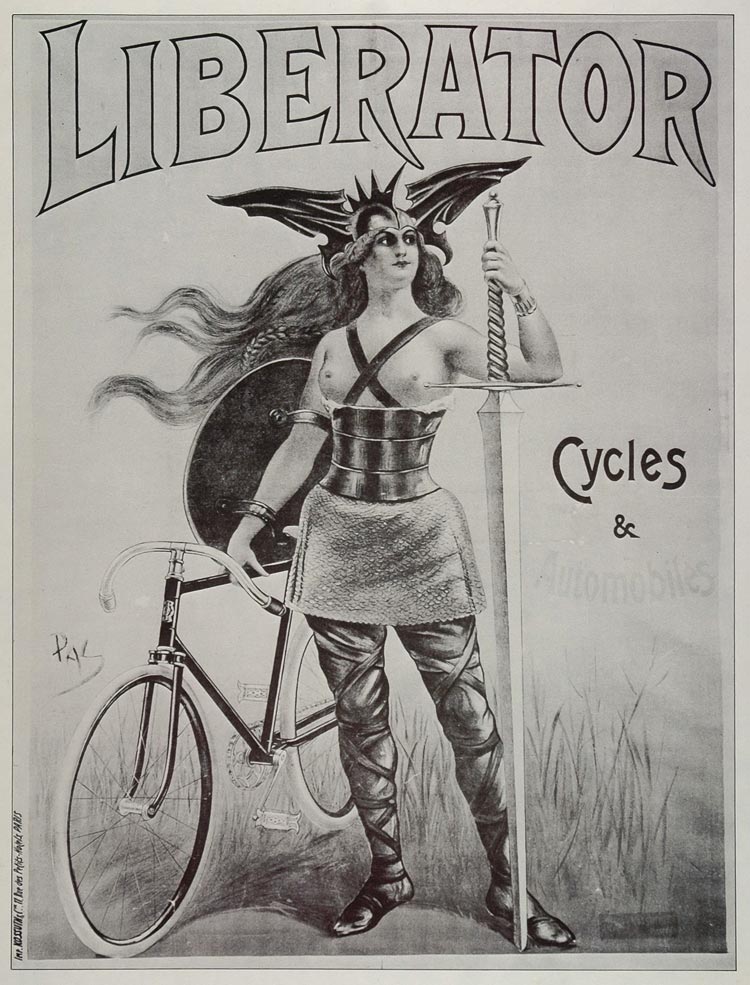 This is a 1973 black and white reproduction of a poster that was created circa 1900 by artist PAL (Jean de Paléologue) to advertise Liberator Bicycles.