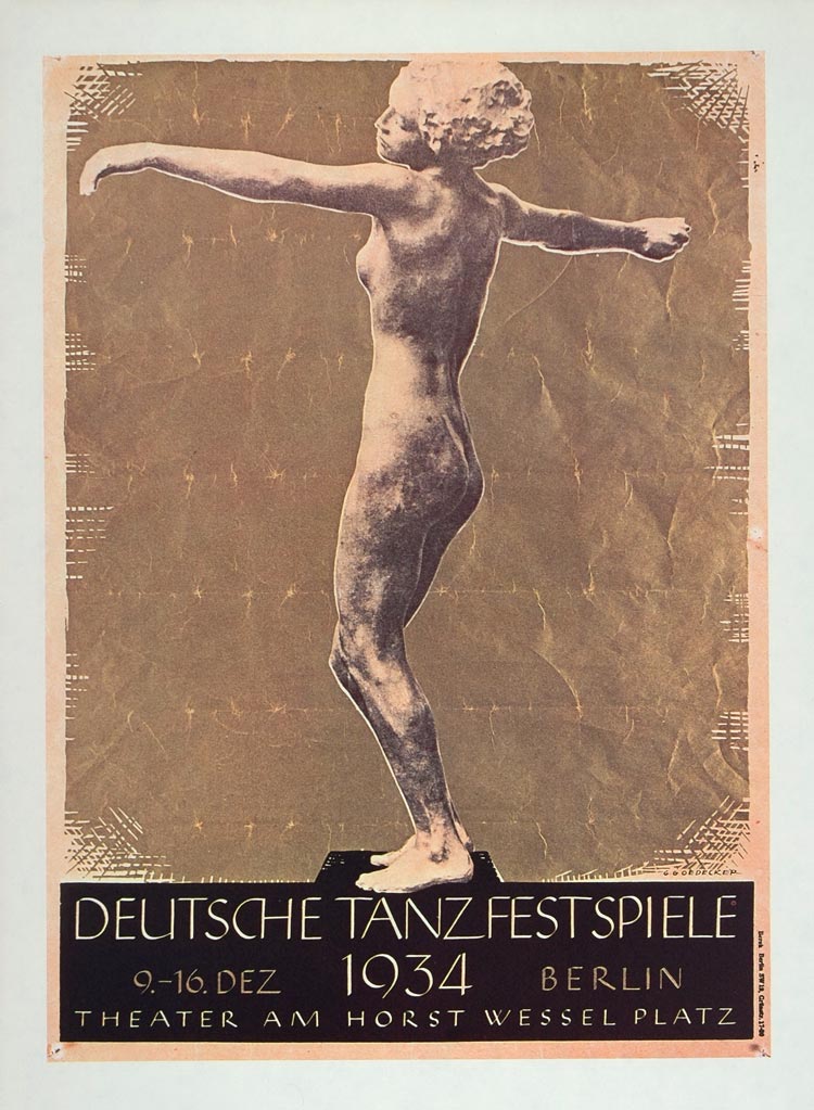 This is a 1975 color reproduction of a poster that was created in 1934 by the artist G. Goedecker for the Deutsche Tanzfestpiele, Dec. 9-16, 1934 in Berlin.