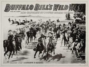 Period Paper is pleased to offer a wonderful collection of prints of posters advertising Buffalo Bill's Wild West shows. William Frederick "Buffalo Bill" Cody (1846 Ð 1917) was an American soldier and buffalo hunter and is perhaps best known as a showman. A colorful figure, his name is synonymous with the American Old West. This is a collection that will be of interest to collectors of western Americana as well as to graphic design artists. Please note that these prints are 1976 reproductions of the original posters. These fabulous prints would look excellent framed.