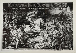 Period Paper is pleased to offer a wonderful collection of prints of posters advertising Buffalo Bill's Wild West shows. William Frederick "Buffalo Bill" Cody (1846 Ð 1917) was an American soldier and buffalo hunter and is perhaps best known as a showman. A colorful figure, his name is synonymous with the American Old West. This is a collection that will be of interest to collectors of western Americana as well as to graphic design artists. Please note that these prints are 1976 reproductions of the original posters. These fabulous prints would look excellent framed.