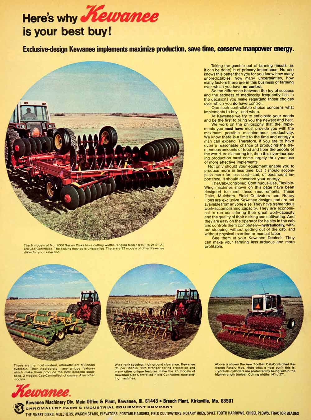This is an original 1977 color print ad for "Kewanee Farm Machinery," from the Kewanee Division whose main office was then located in Kewanee, Illinois; and had a branch plant in Kirksville, Missouri.