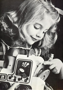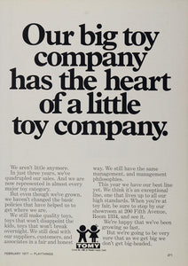 This is an original 1977 double-page, black and white print ad for Tomy toys. Please see both images.