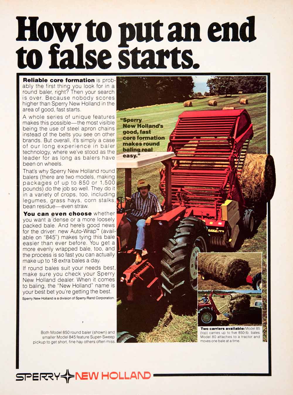 This is an original 1978 color print ad for the Model 850 baler from Sperry New Holland-- a division of the Sperry Rand Corporation.