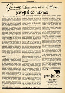 This is an original 1979 black and white print ad for the Foro-Italico Ristorante located at 455 West 34 Street, New York City.