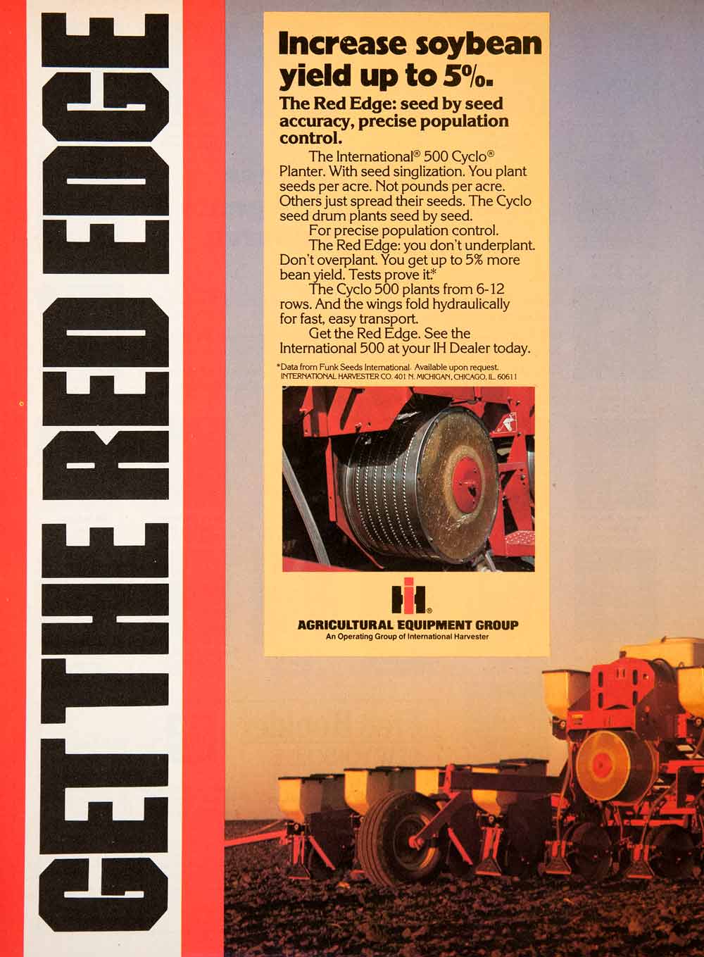 This is an original 1979 two-page color print ad for "International Harvester" farming equipment; featuring their Red Edge.