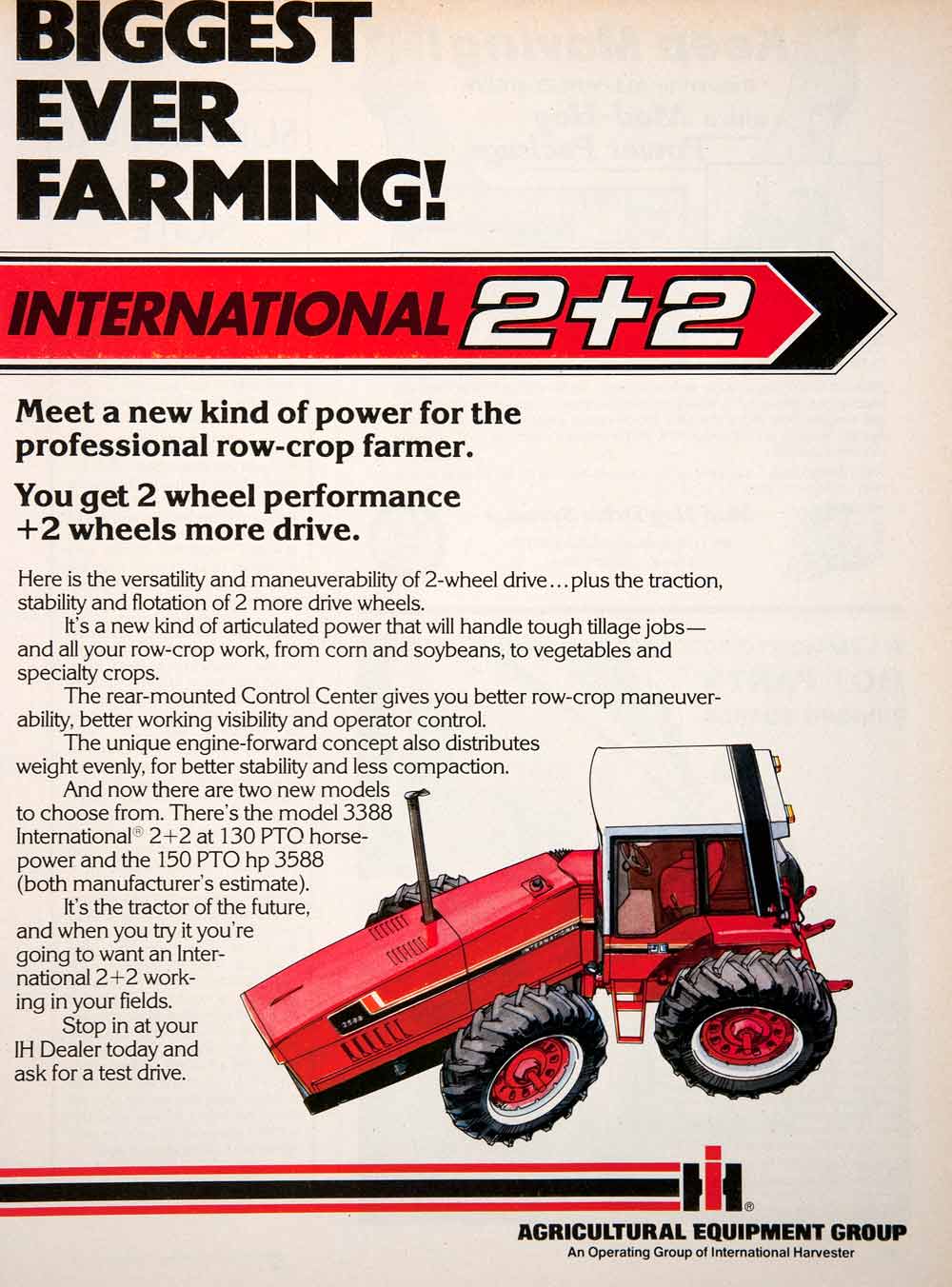 This is an original 1979 two-page color print ad for "International Harvester" farming equipment; featuring their 2 + 2 Tractor.