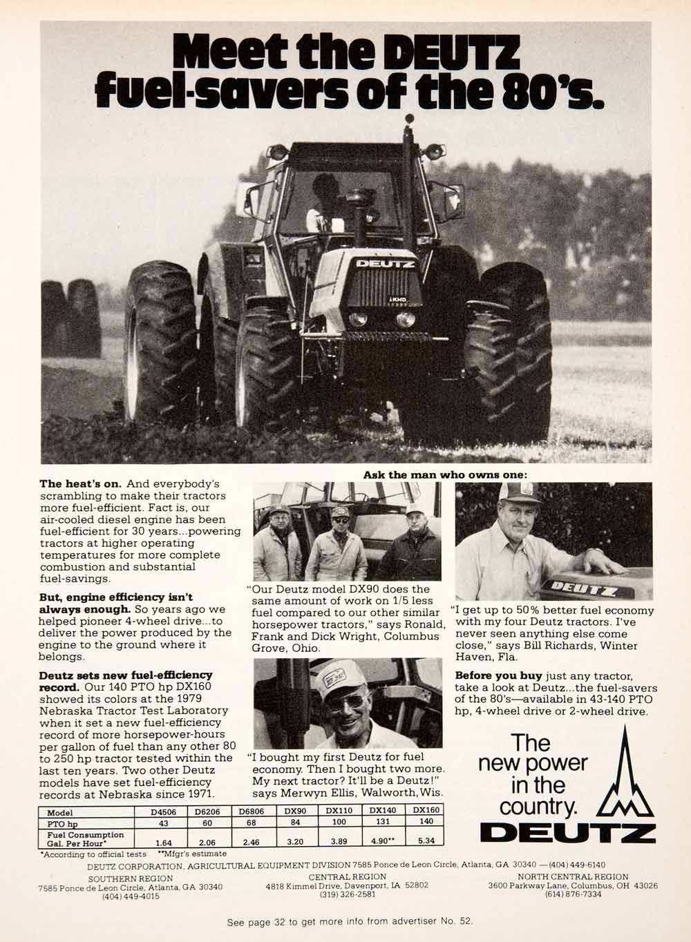 This is an original 1980 black and white print ad for "Deutz Agricultural Equipment."