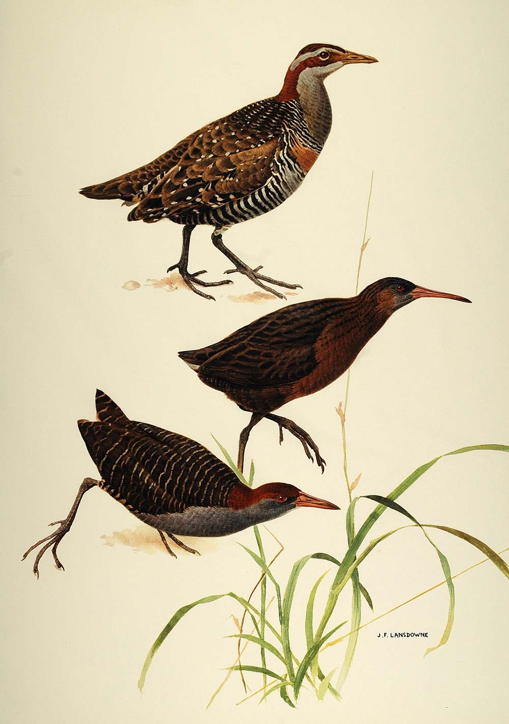 Period Paper is pleased to offer a group of lovely color prints of birds of the family Rallidae. Commonly called rails, they are small-to-medium sized birds which are mostly associated with marshes or wetland habitats.