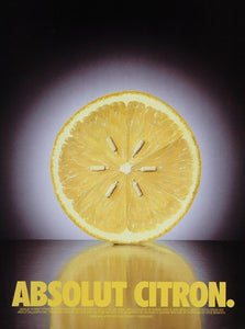 This is an original 1996 color print ad for Absolut Citron--Citrus-Flavored Vodka. Photograph by Steve Bronstein.