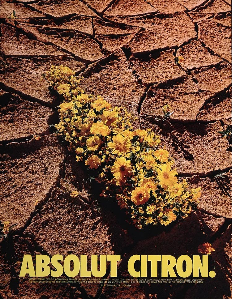 This is an original 1998 color print ad for Absolut Citron Vodka. Photograph by Steve Bronstein.