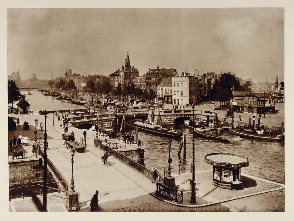 c1930 Canals Boompjes Rotterdam Holland Photogravure - ORIGINAL PHOTOGRAVURE