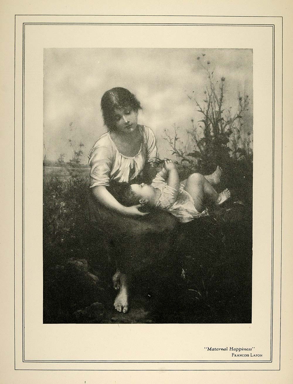 "Maternal Happiness." This is an original halftone print of a painting by the French artist, Francois Lafon, displayed in the Paramount Theatre. c1930.